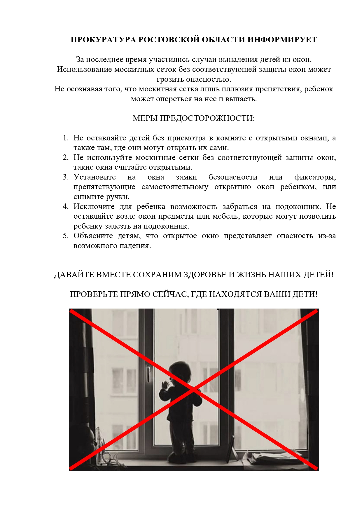 памятка о мерах предосторожности в связи с участившимися случаями выпадения детей из окон